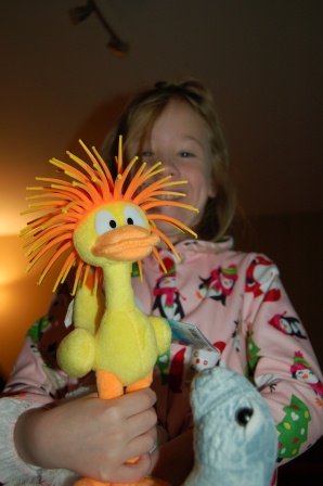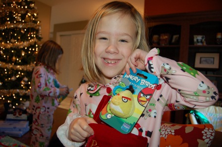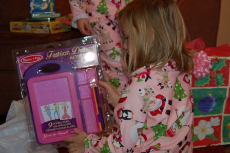 Perry got an Angry Bird keychain for her backpack and a fashion design set (Mommy's favorite gift!)