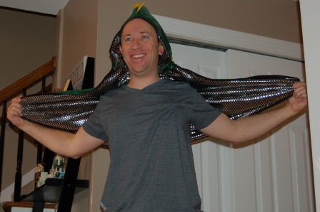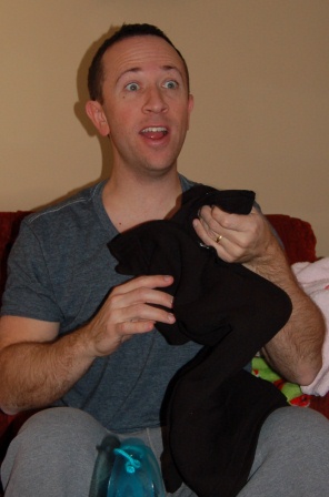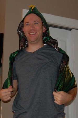 Daddy is excited about Luca's dragon/knight dress up outfit!