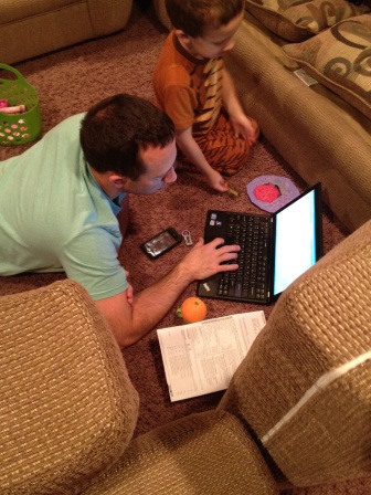 Luca and Daddy built a fort...apparently the fort has wi-fi capabilities
