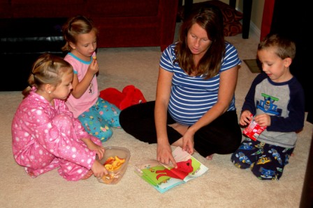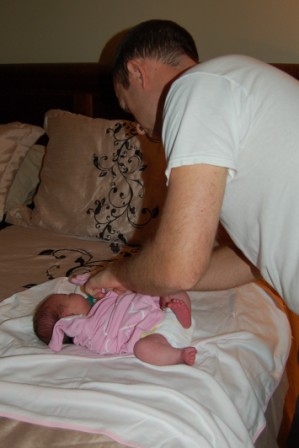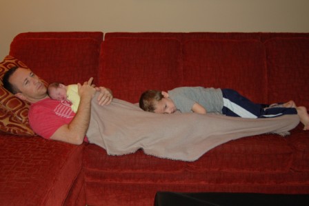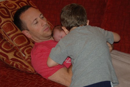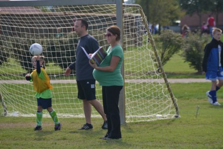 Megan taking some practice shots on Perry...totally unflattering picture of Mommy at 40 weeks pregnant