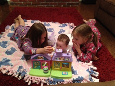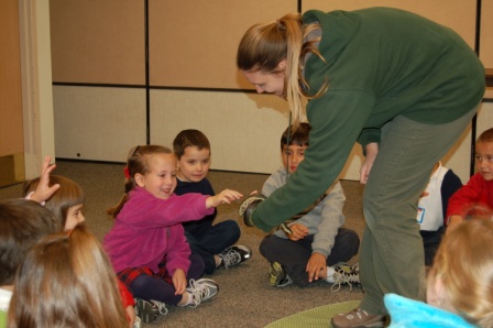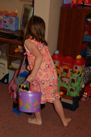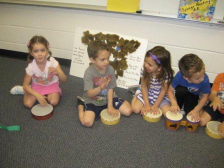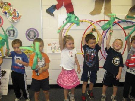 Ella using a clothespin like a bird's feet to grab "food"...my little group