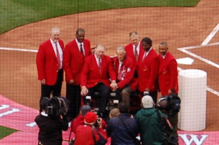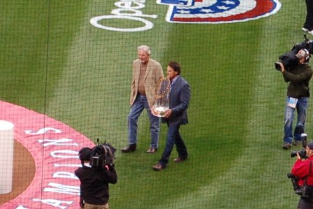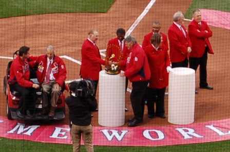 Tony LaRussa and Dave Duncan bringing out the 2011 trophy