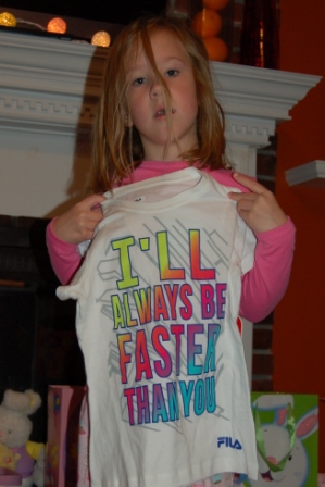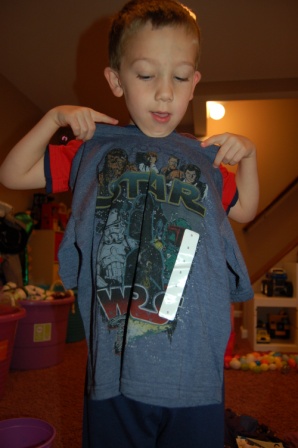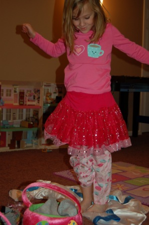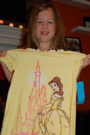 Found an old shirt that will come in handy for Carly...Ella in my tiara/veil/shoes