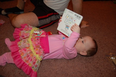 Luca reading his book, Ella hanging out with Grandma Kim and Papa John