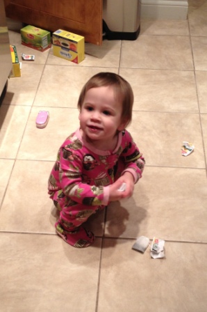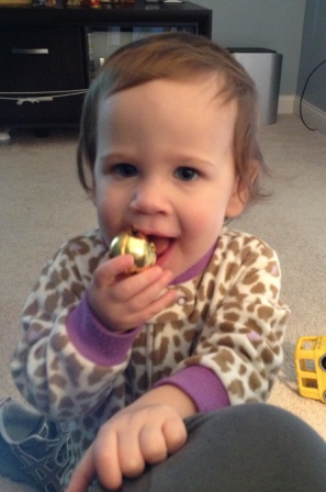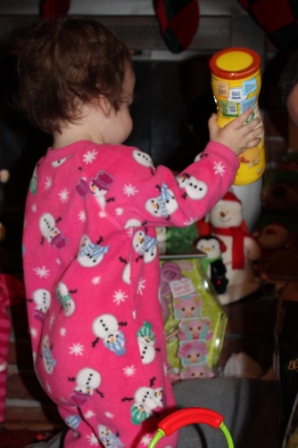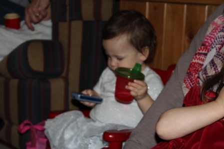 Baby likes to bring her blanky and paci downstairs after nap...or maybe she's getting in the Christmas spirit as the Blessed Mary