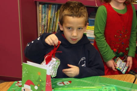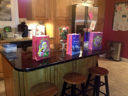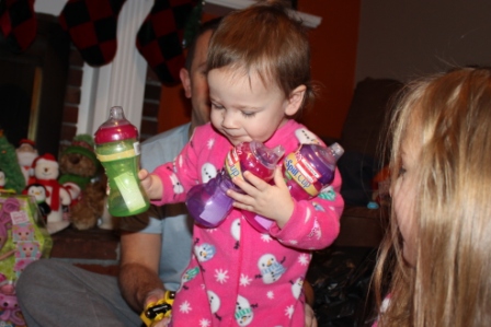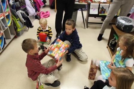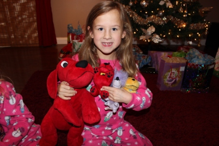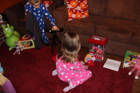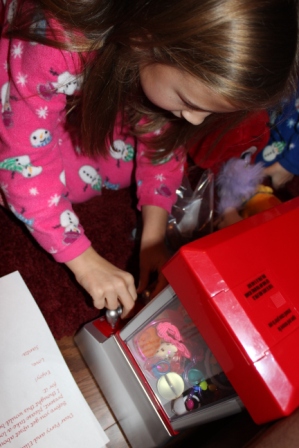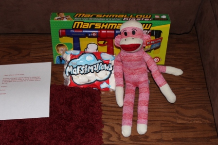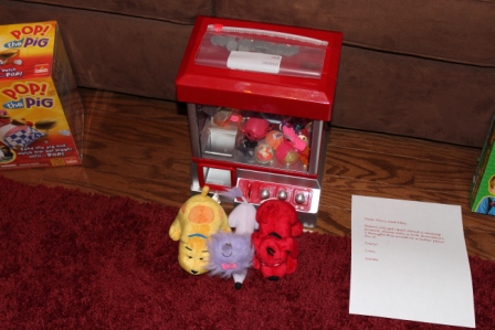 (crane game and mini Clifford and friends for Ella...marshmallow gun and sock monkey for Perry)