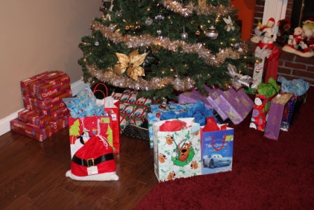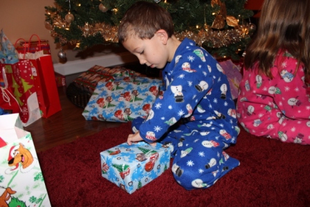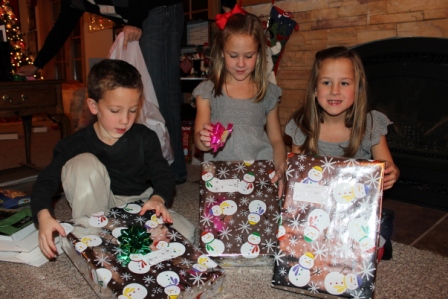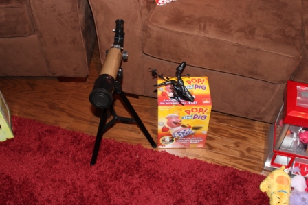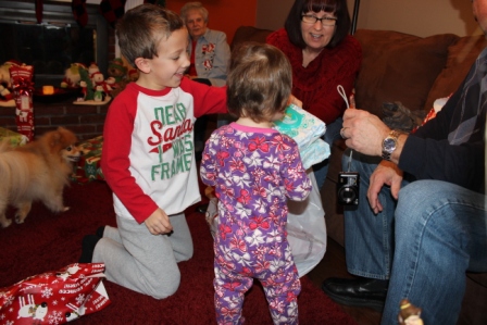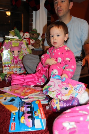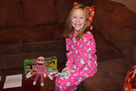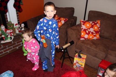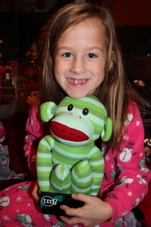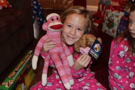 (Rody, sock monkey, and Bitty Baby pet for Carly...telescope, helicopter, and Pop the Pig game for Luca)