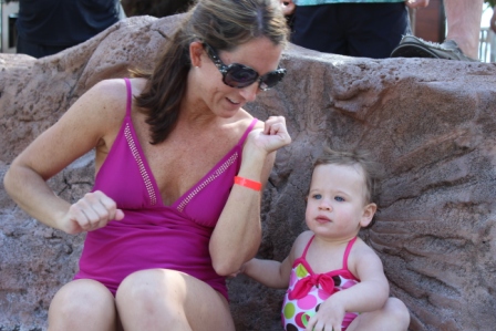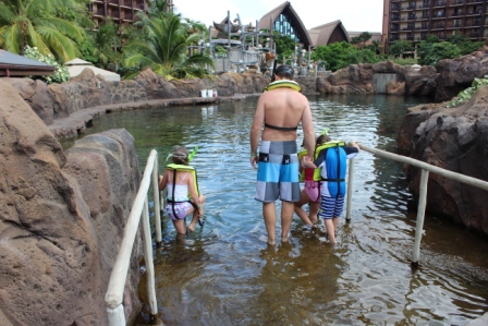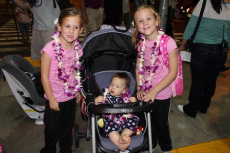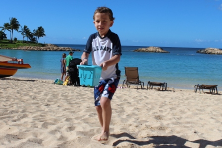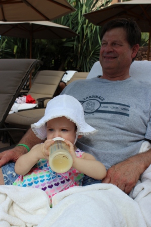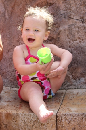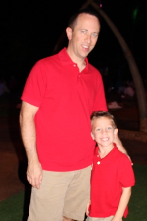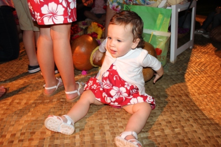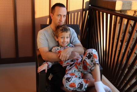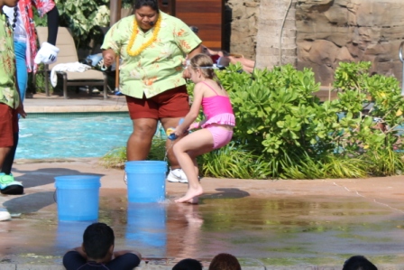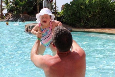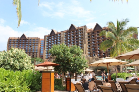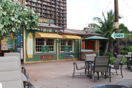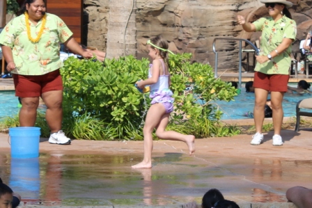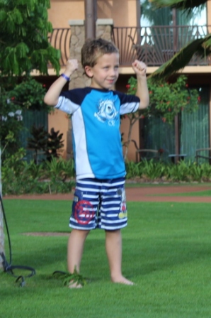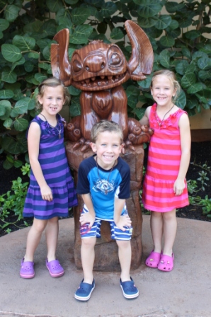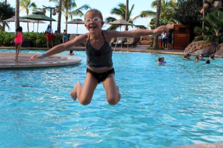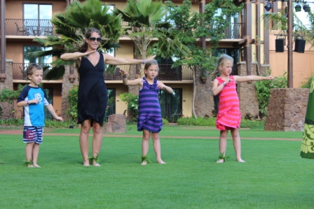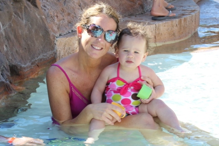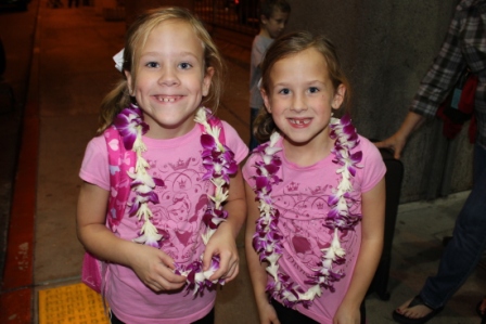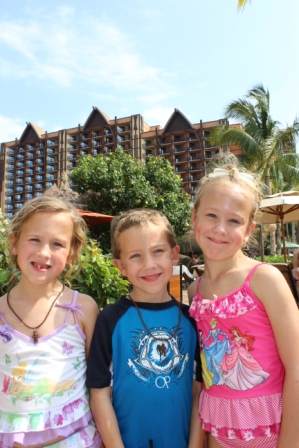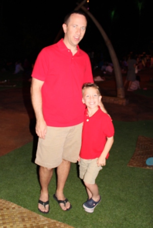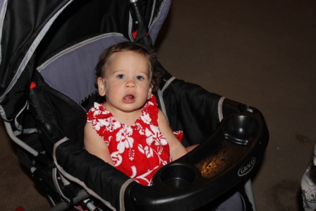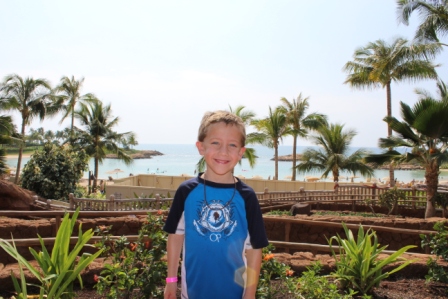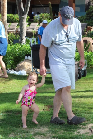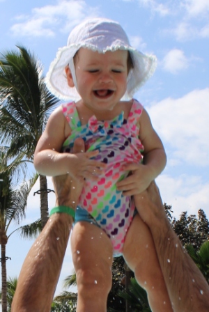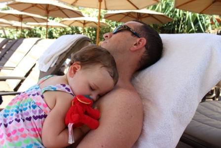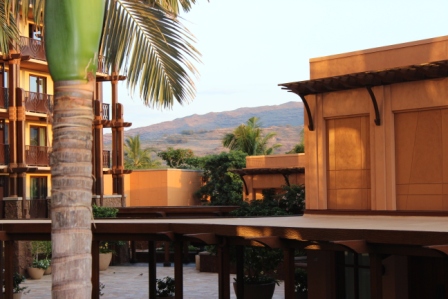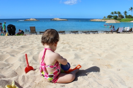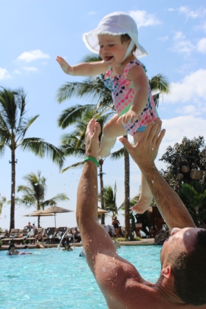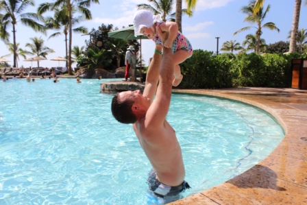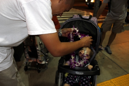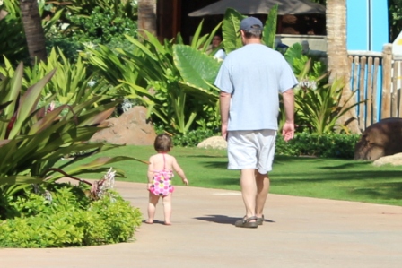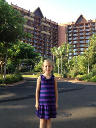 Ella and I in front of Aulani Resort on our way to the grocery store