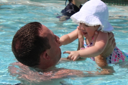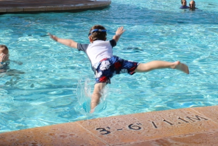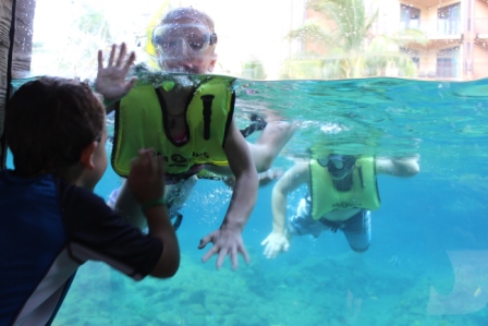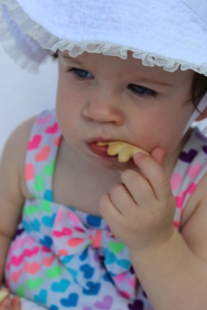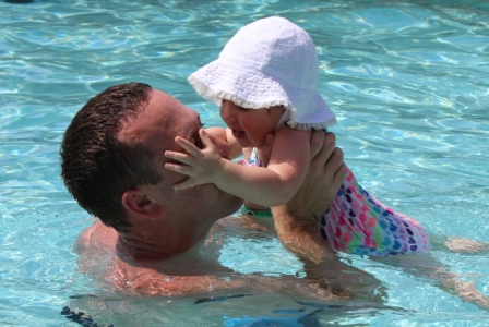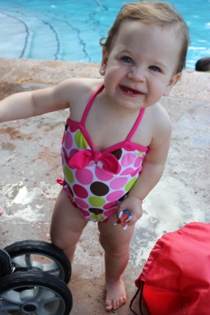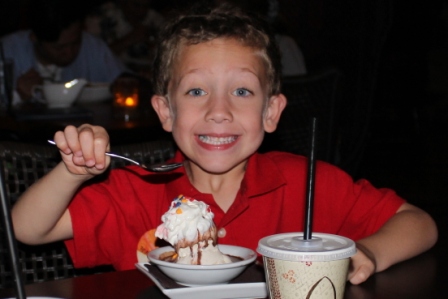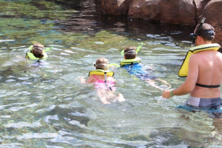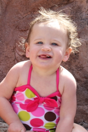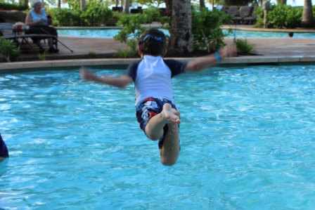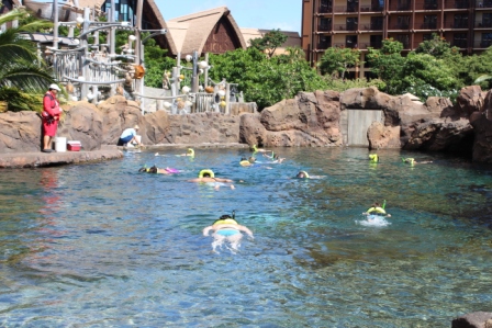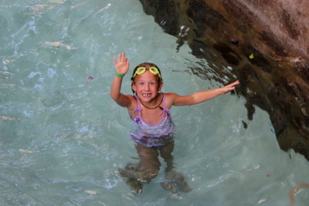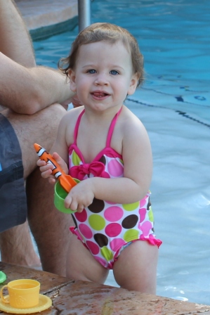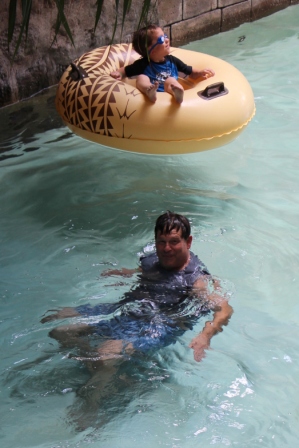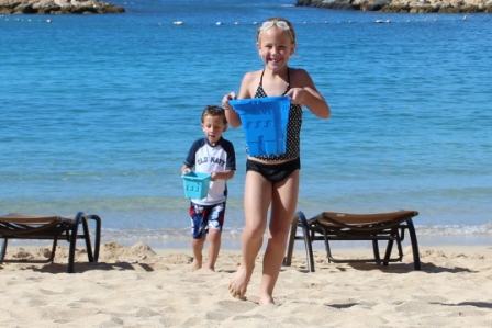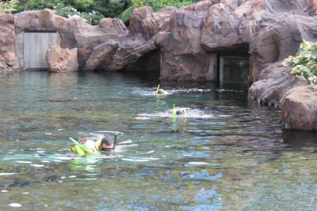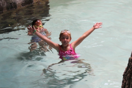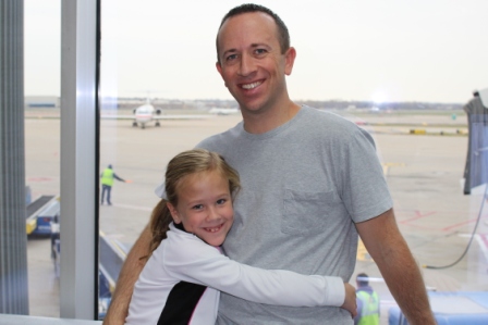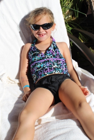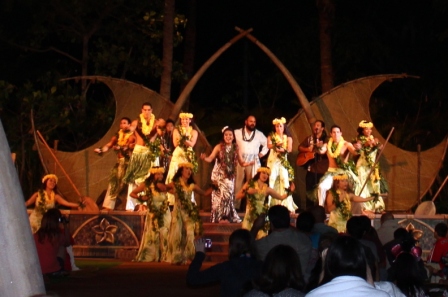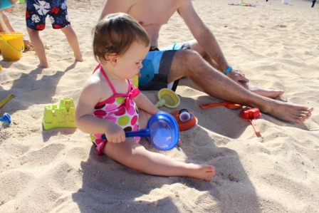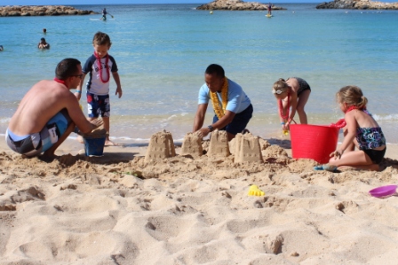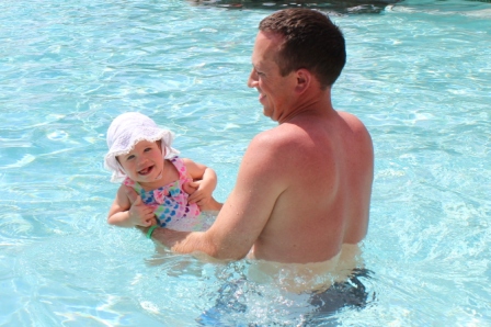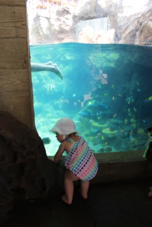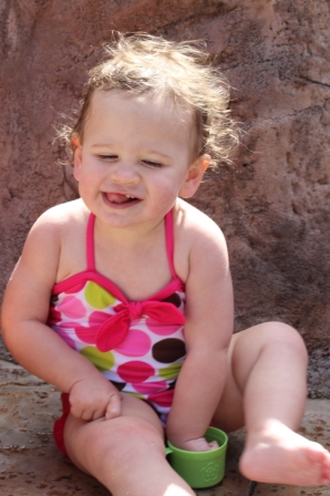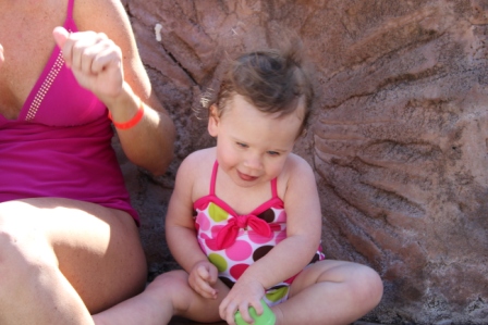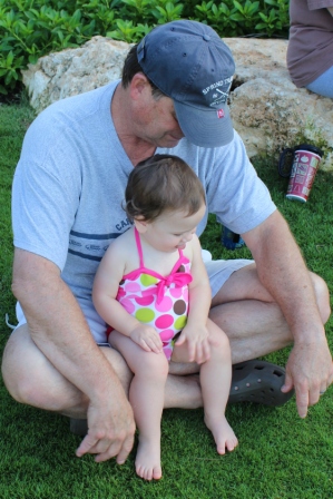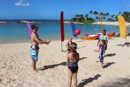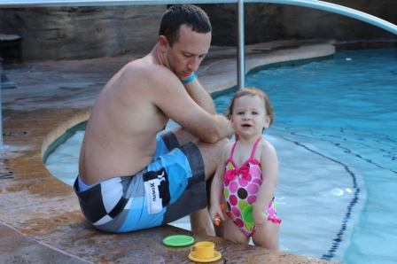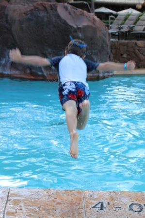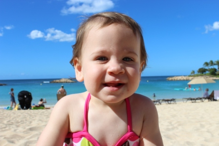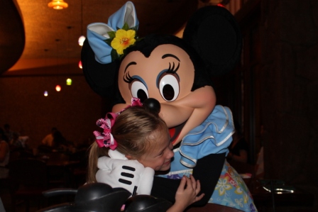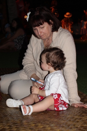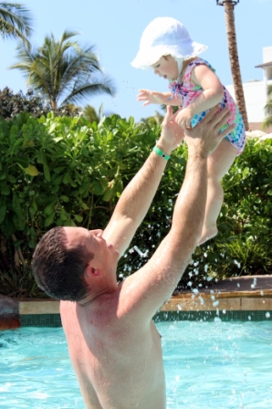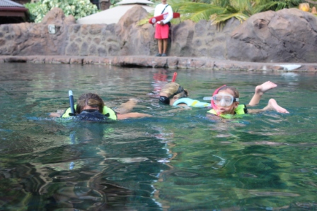 Ella and I in front of Aulani Resort on our way to the grocery store