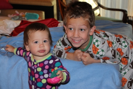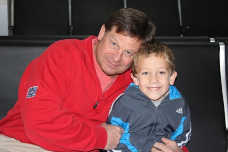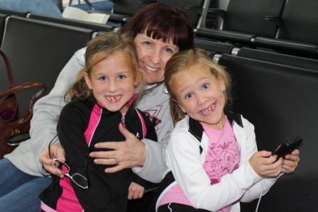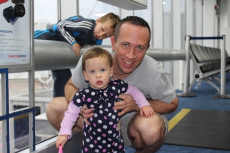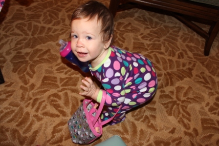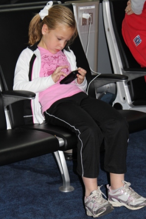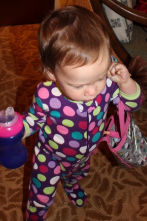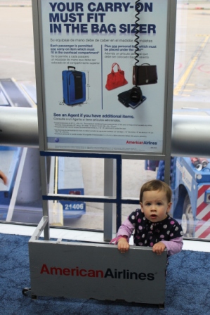 Checking to make sure our carry on luggage fits...Perry playing on Grandma's phone