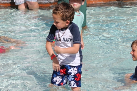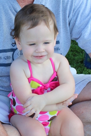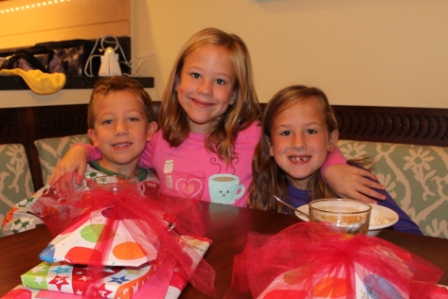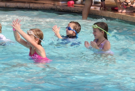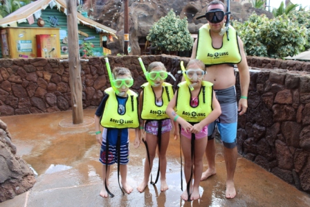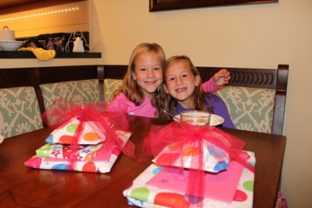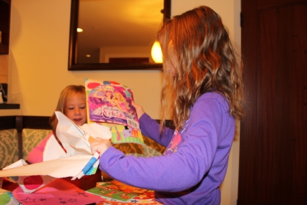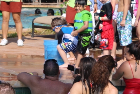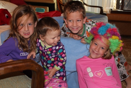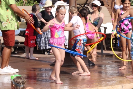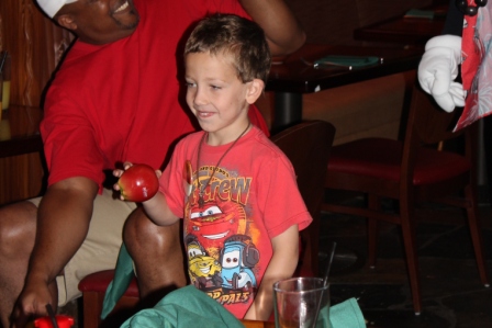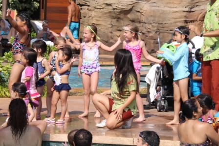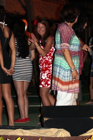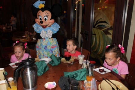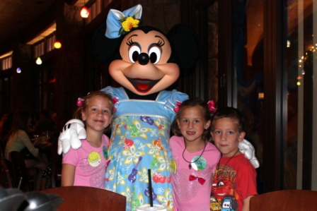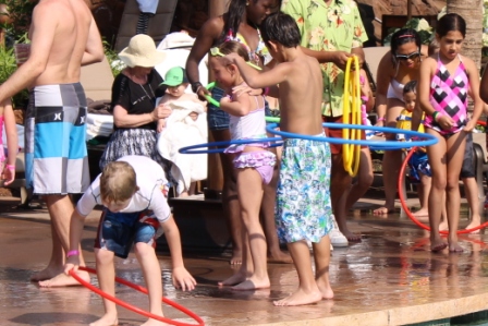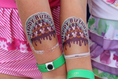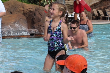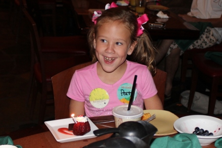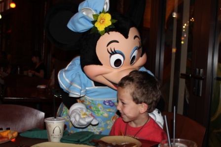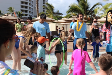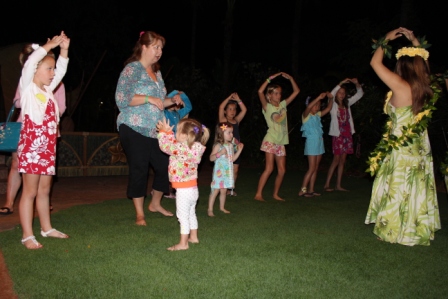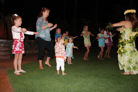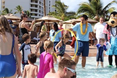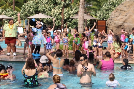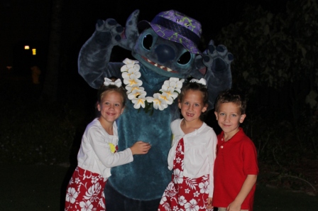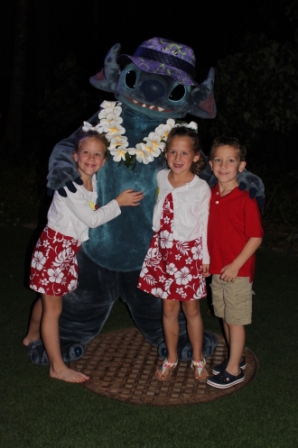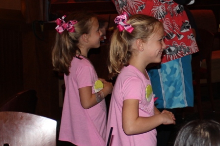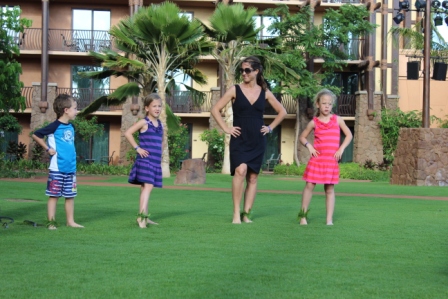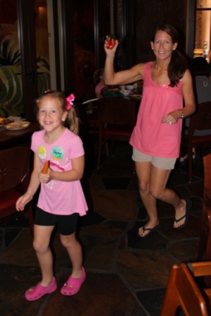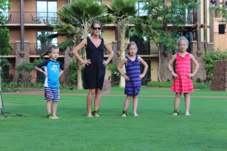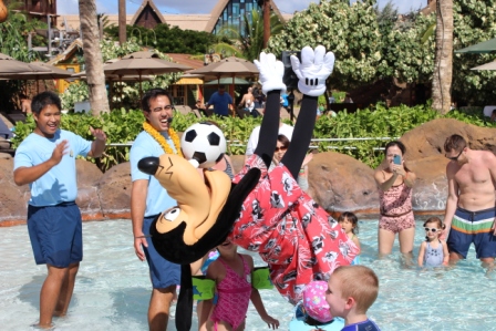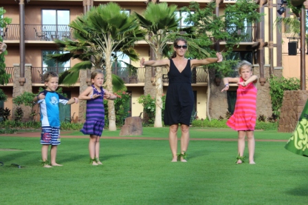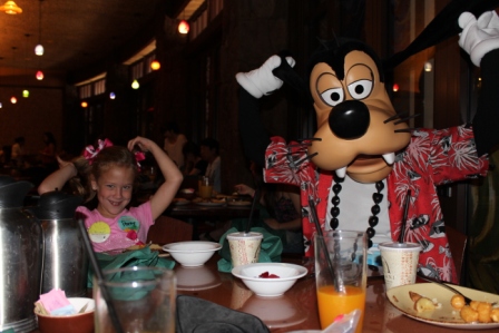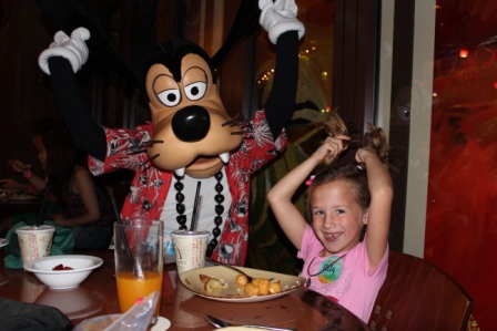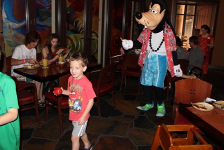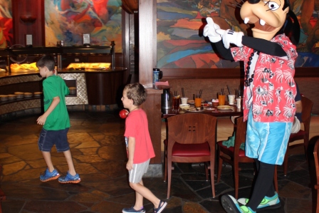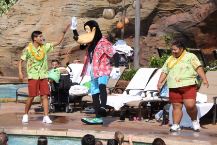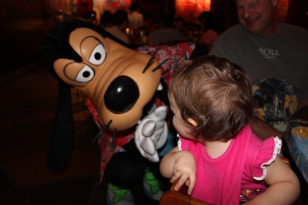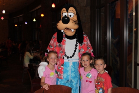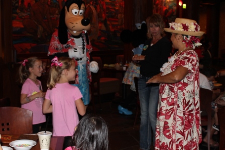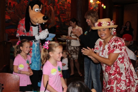 Perry and Ella doing the birthday dance with Goofy and Aunty
