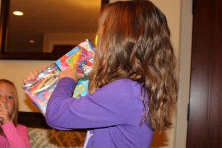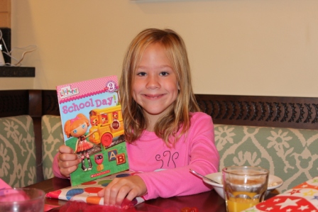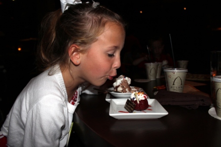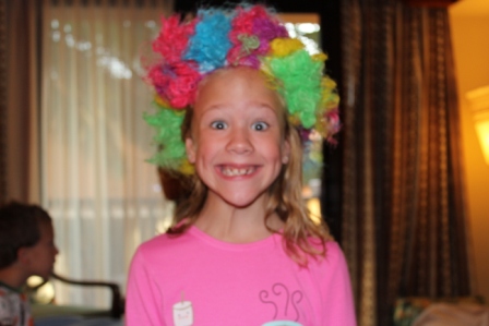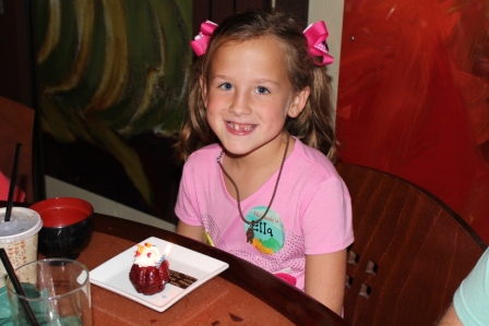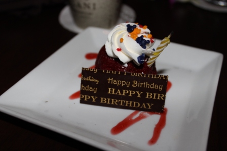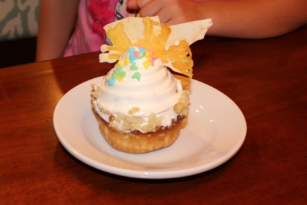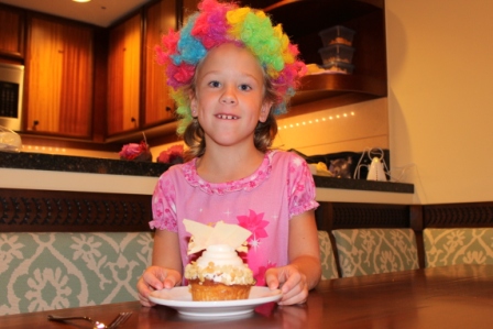 Perry with her afro on and the giant cupcake we got at Mama's Snack Stop
