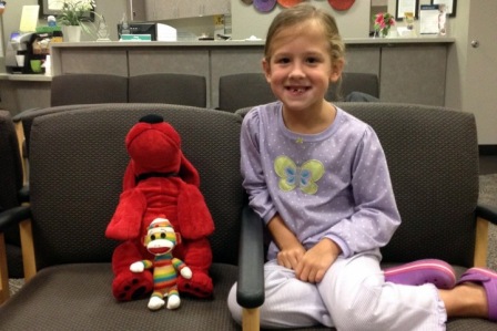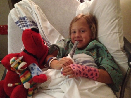 Recovering with Clifford, Sock Monkey, and a popsicle