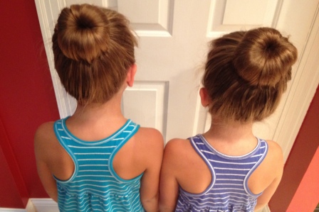 Sock buns...can you tell Ella was thrilled to take a picture?