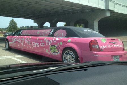 Perry and Ella were invited to a party and got to ride in a pink limo!