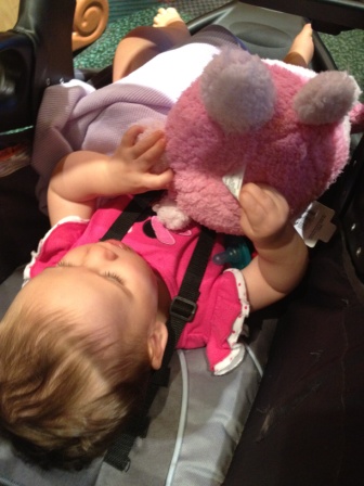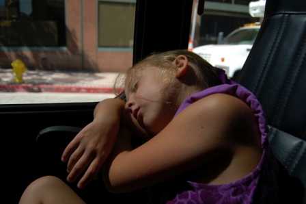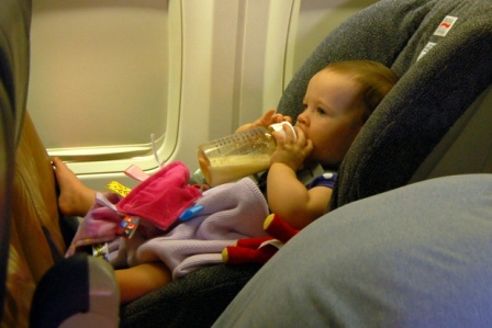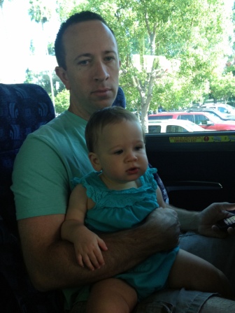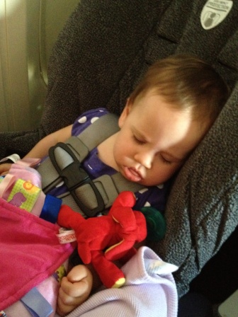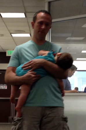 On the way to the airport (no carseat!)...napping at the airport due to a delay