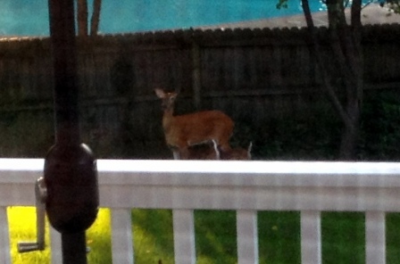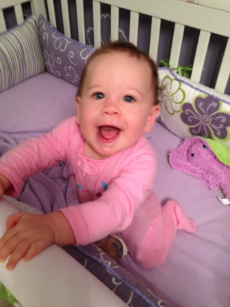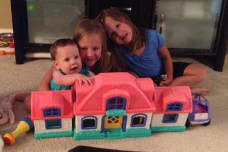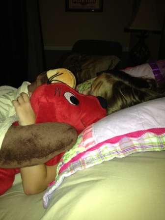 Ella snuggled up in Mommy's bed with all her animals when Daddy was out of town