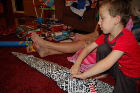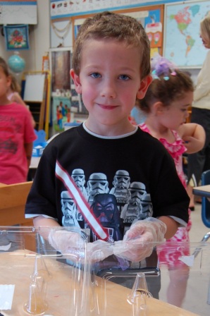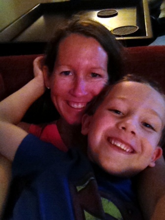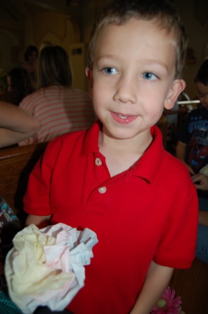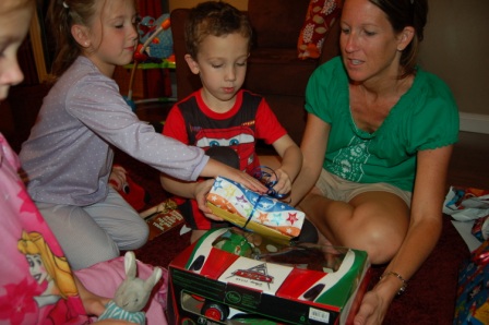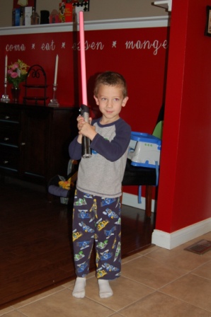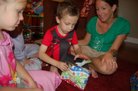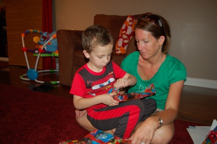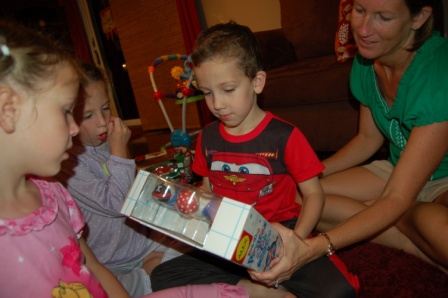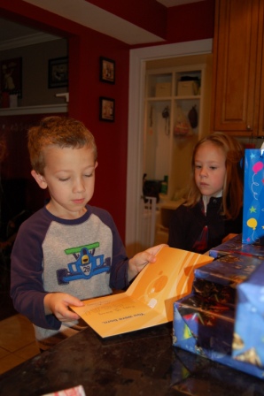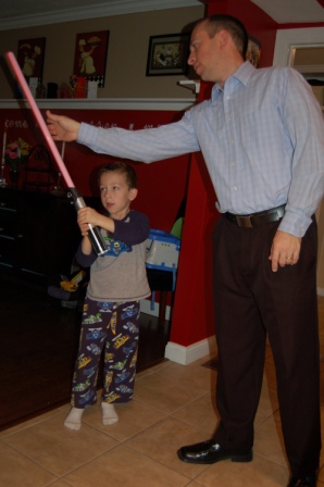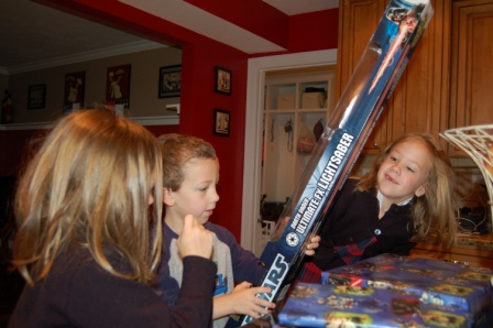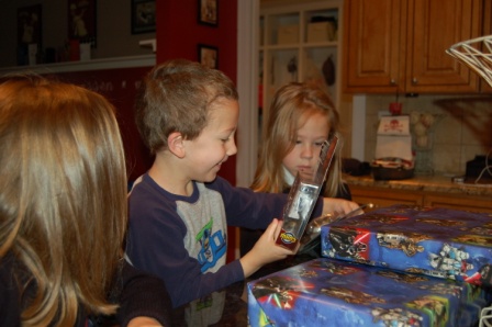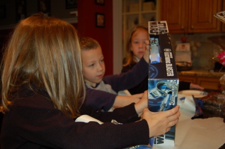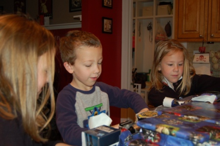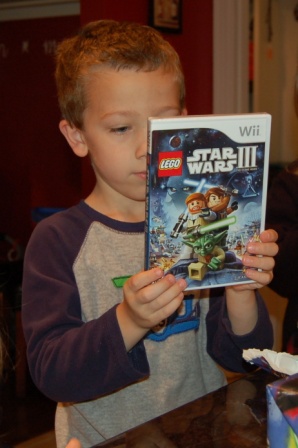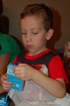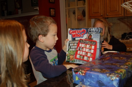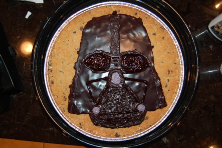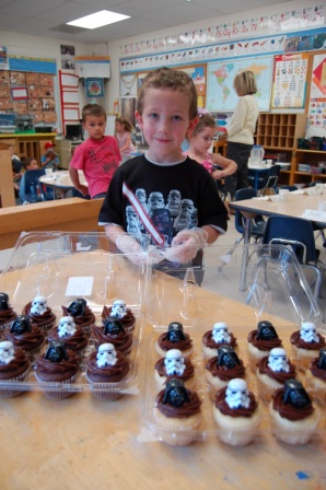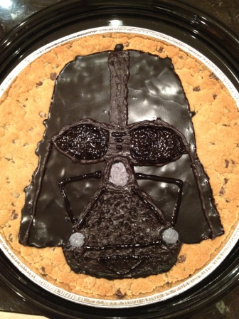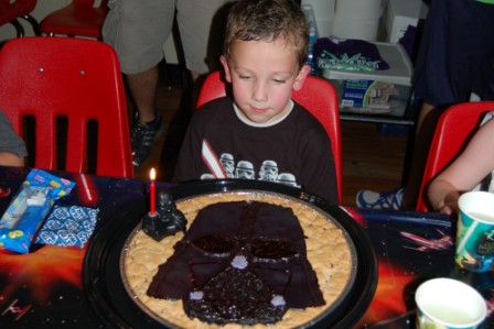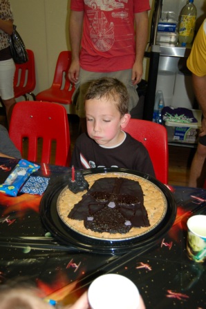 Enjoying the Star Wars Pez, fruit snacks, and cookie cake