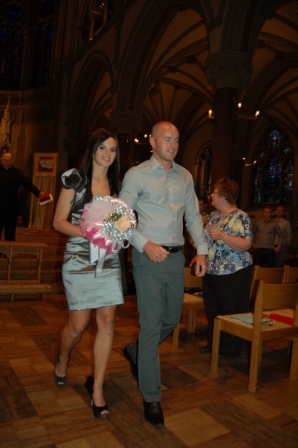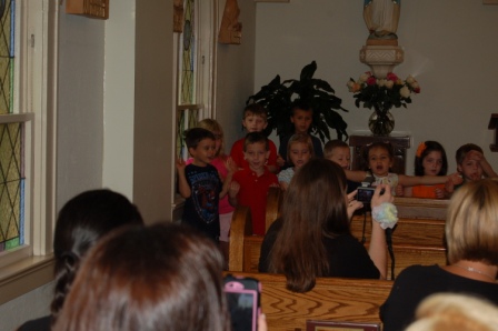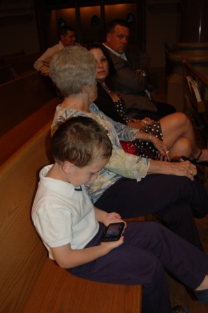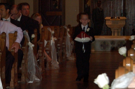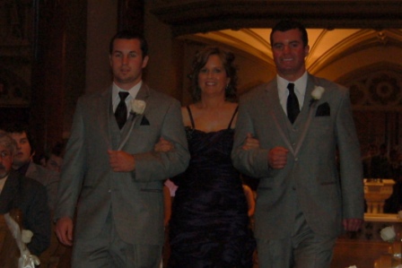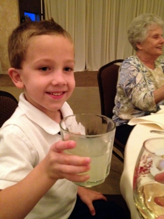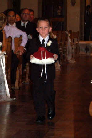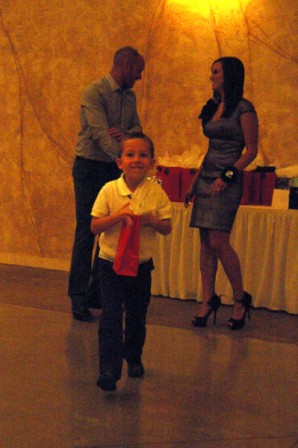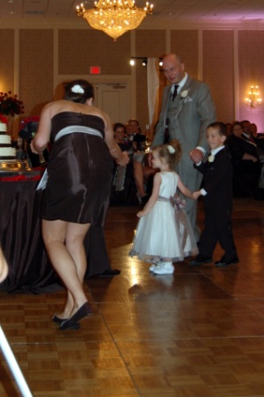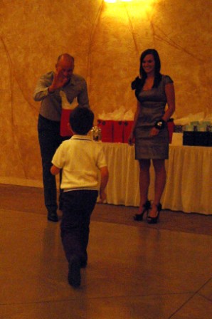 Tyler and Mommy walking into the reception...Luca and the flower girl walking in