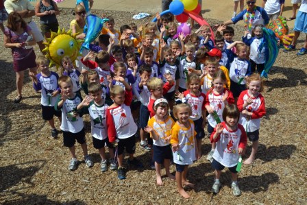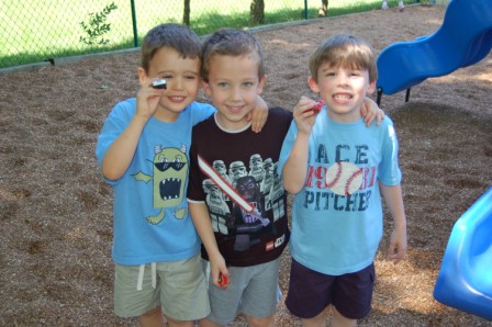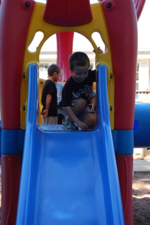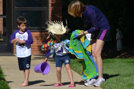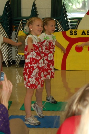 Ella doing the surfin' safari scooters...Perry doing the beach bum relay