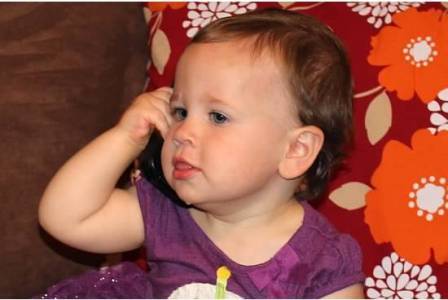Carly playing with Grandma Kim's iPhone