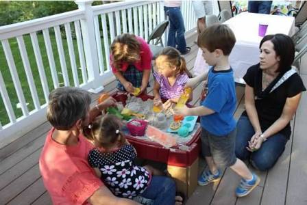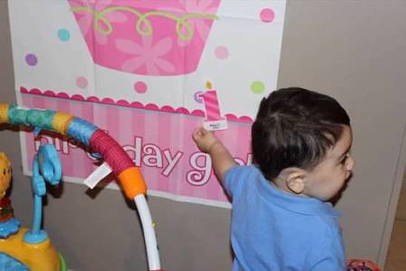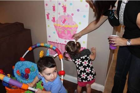 Andy Jr and Madelyn playing pin the candle on the cupcake