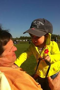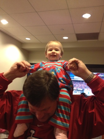 Carly hanging out with Papa at a soccer game