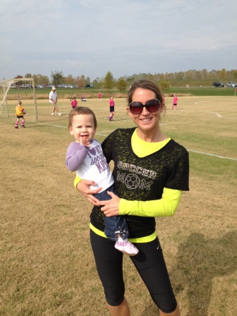 Carly's shirt says "I Love My Soccer Mom"...my shirt says "Soccer Mom"