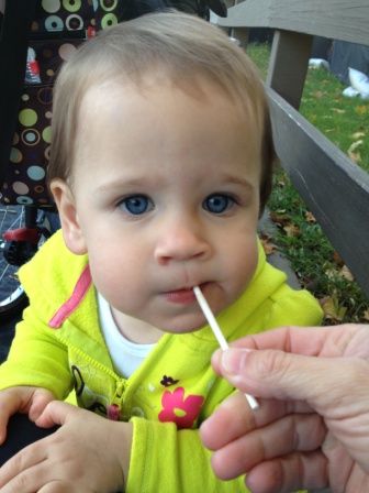 Carly enjoying her very first sucker at Six Flags