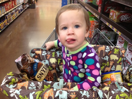 Shopping with Carly...I want the red ball, no the orange ball, no the pretzels!
