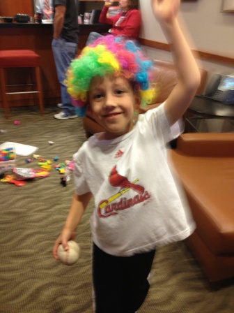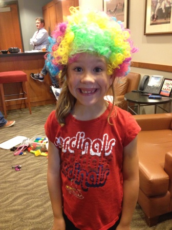 Fun with the circus afro during the rain delay
