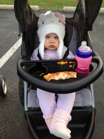 Keeping warm and eating pizza