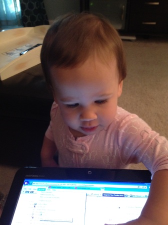 Such a mama's helper...she helps me on the computer and she helps me eat my lunch