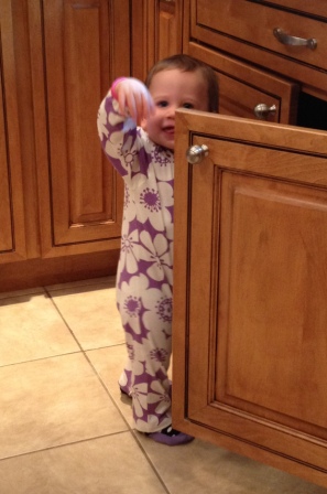 Hi Mom! It's okay if I play with the stuff under the sink, right?