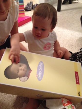 Opening her gifts from her siblings