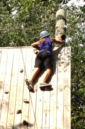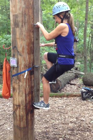 Climbing the pole to zipline