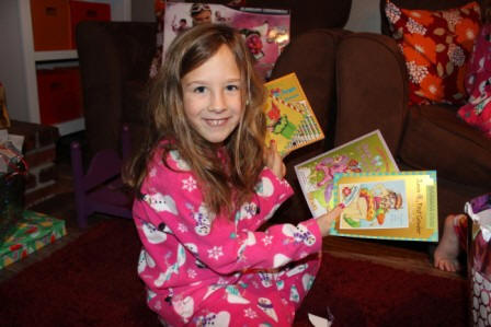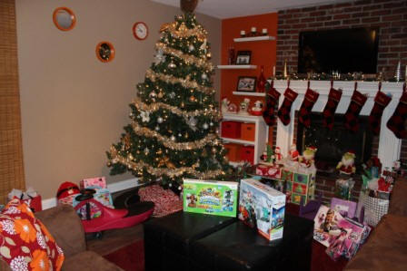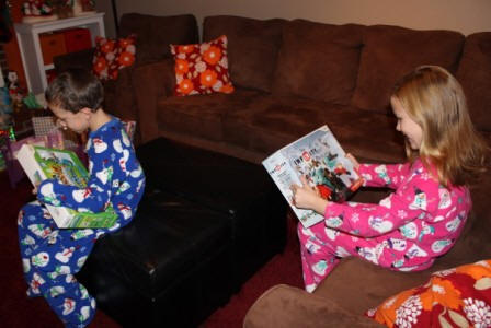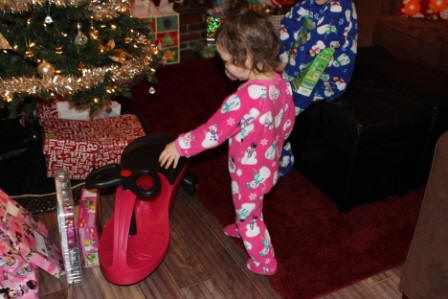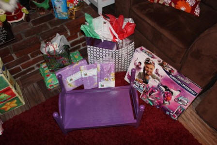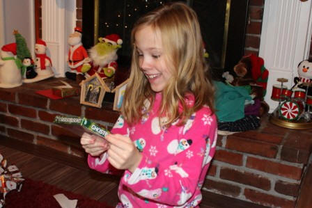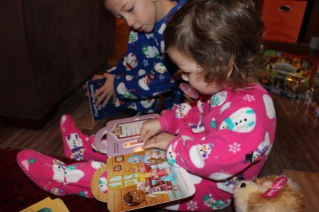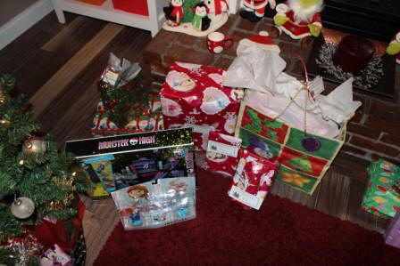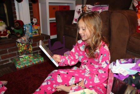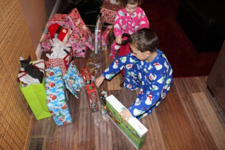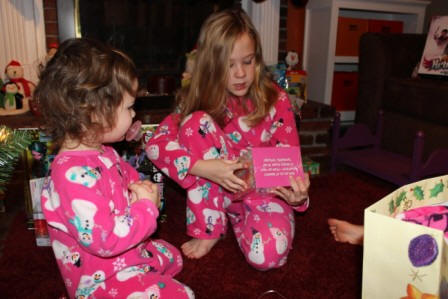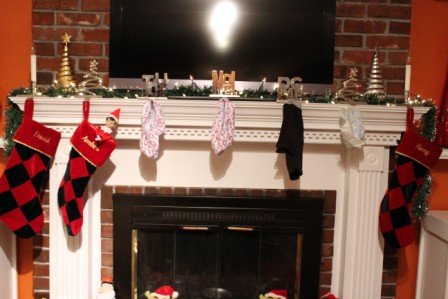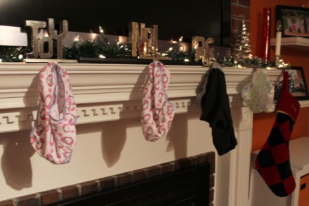 Elfie replaced the kids' stockings with their undies!  Carly thought it was hilarious that her diaper was up there!