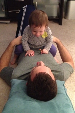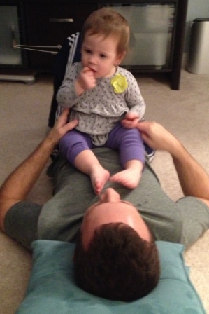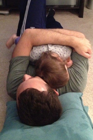 Carly came in for a hug...and then ganked Daddy's shirt!