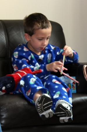 Luca opening his stocking