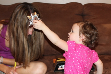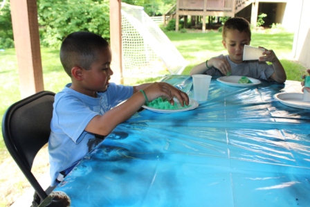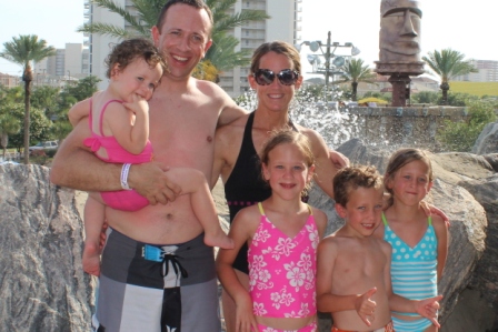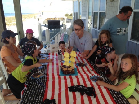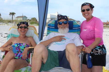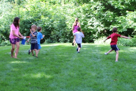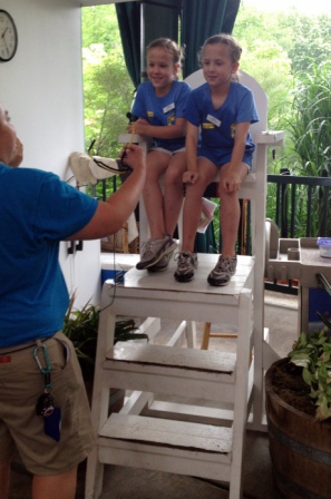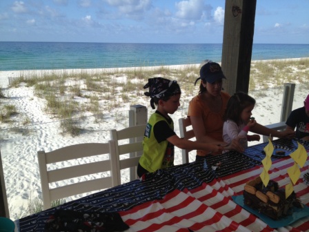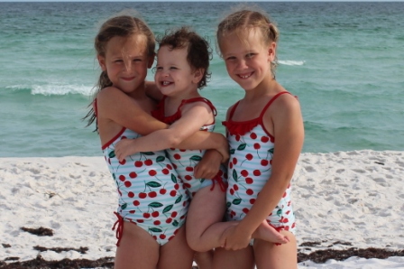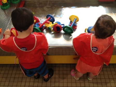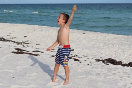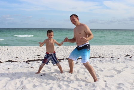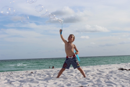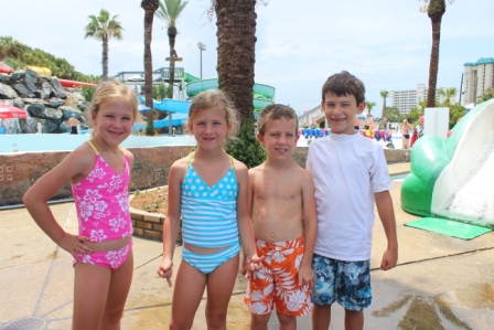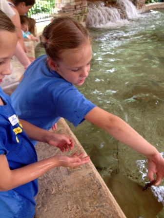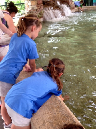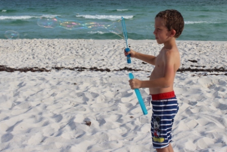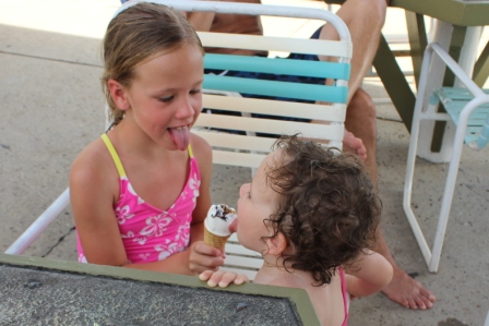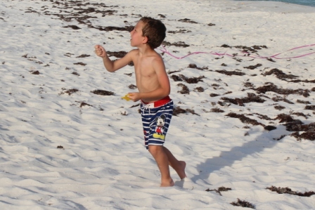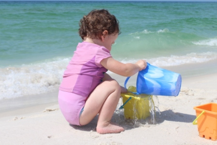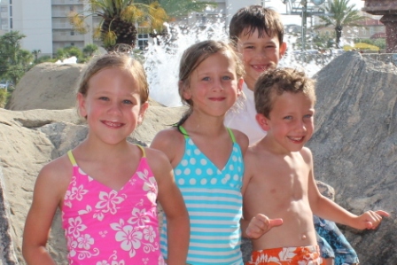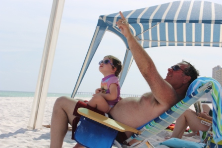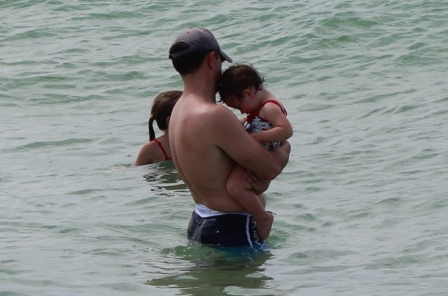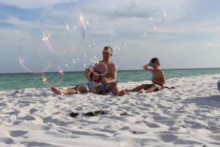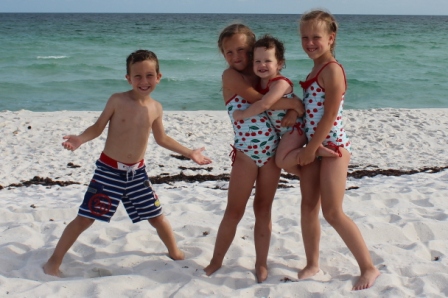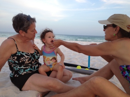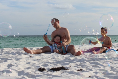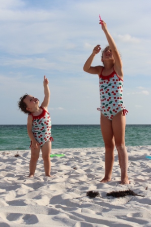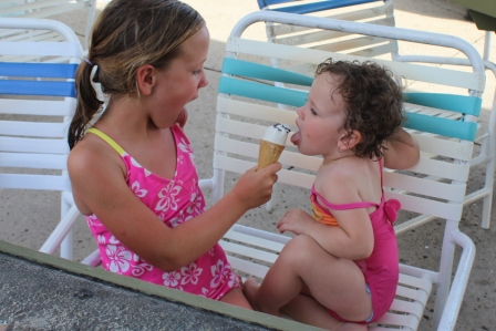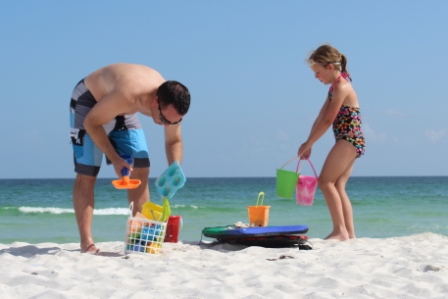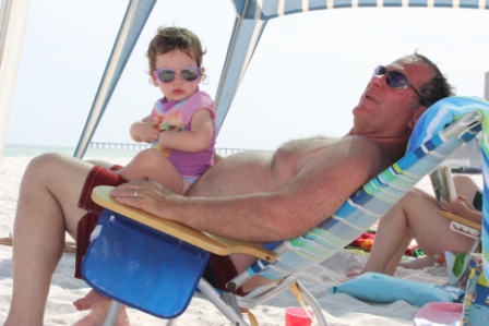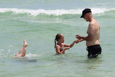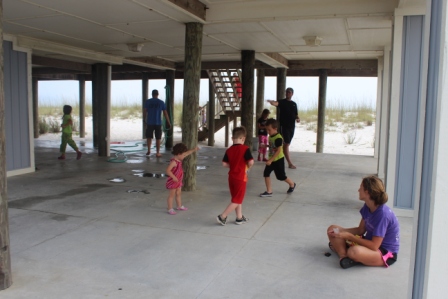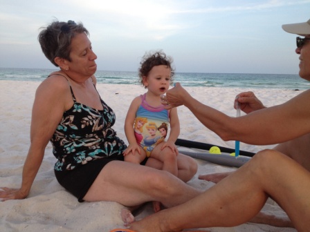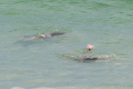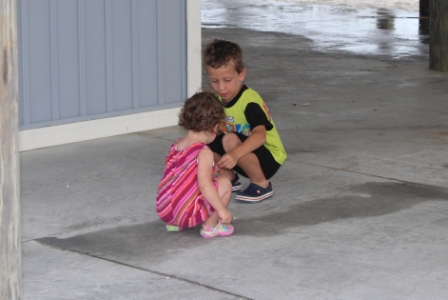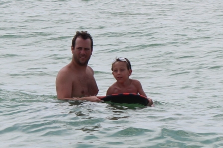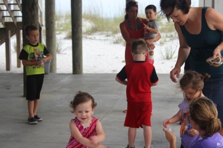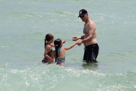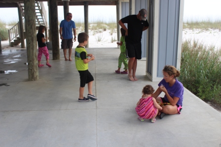 Perry and Ella diving for shells and handing them to Great Uncle Chris
