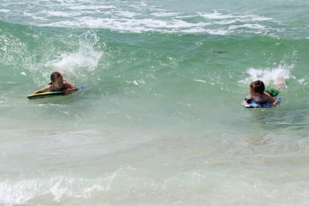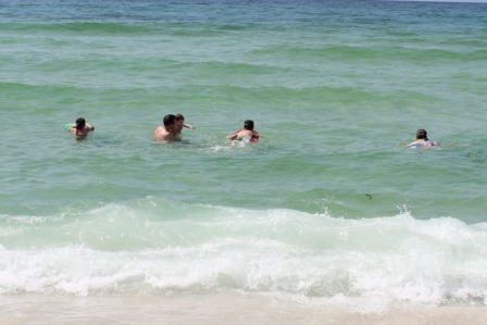Hanging out in the ocean...salt water/sunscreen/sun in the eyes