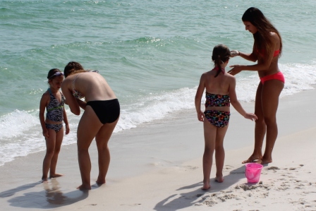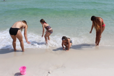 Looking for shells and crabs with the big girls (Lindsay and Artemis)
