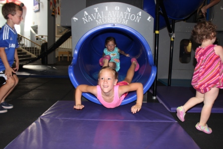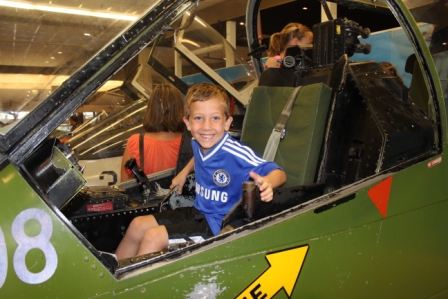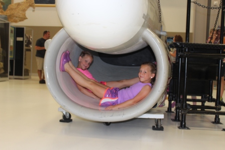 Luca, Jakob, Noel, Perry, Carly, and Ella in the simulator