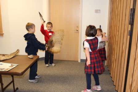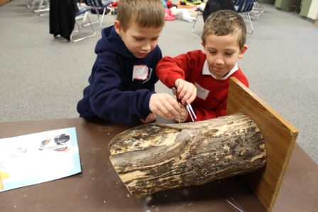 Using tweezers like a woodpecker's beak and clothes pins like a bird's beak