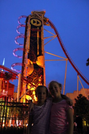 Hard to see, but the 3 bigs rode this crazy log ride at night and got soaked!
