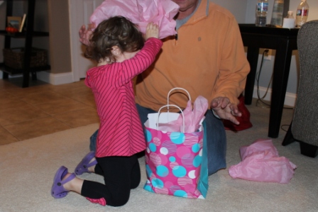 Teppie helping open presents