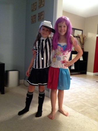 Trying on Halloween costumes - Referee and Katy Perry