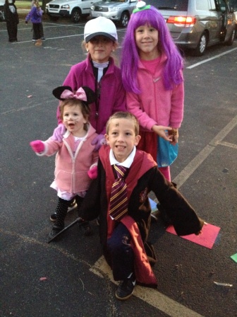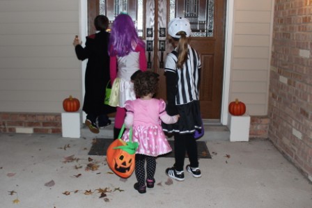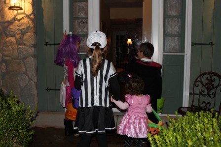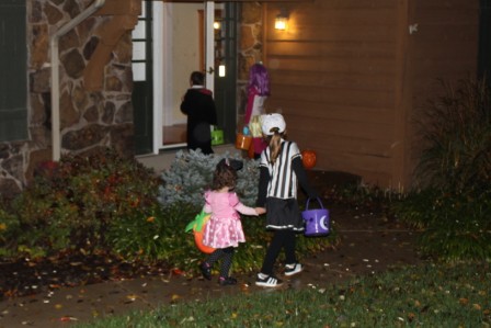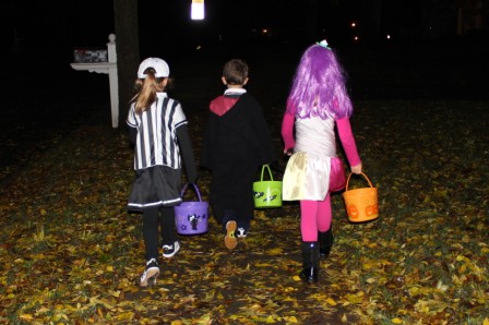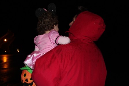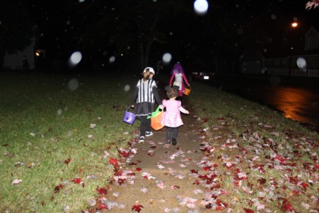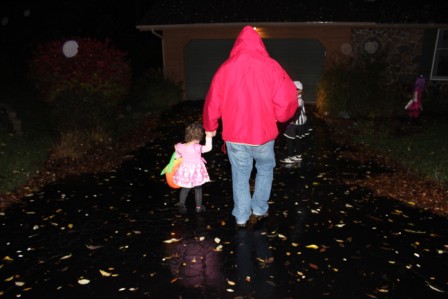 Trick or treating in the rain