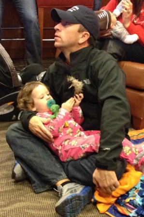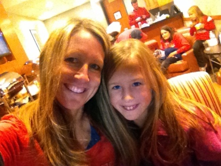 Carly got to go to a playoff game with Mommy and Daddy while the big kids were at school