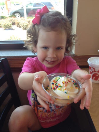 Sprinkles on ice cream at Chick Fil A...we were having a girls day while Daddy and Luca were at Cub Scout camp
